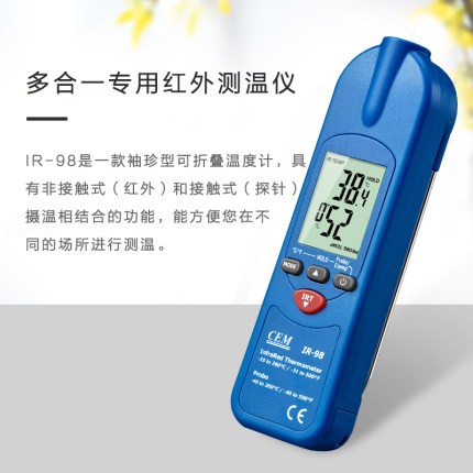 CEM IR-98/99可折疊多合一紅外線測(cè)溫儀集非接觸式紅外線測(cè)溫、針式測(cè)溫、鉗夾測(cè)溫于一體,為您在苛刻環(huán)境下的測(cè)溫提供最佳解決辦法和測(cè)溫工具。