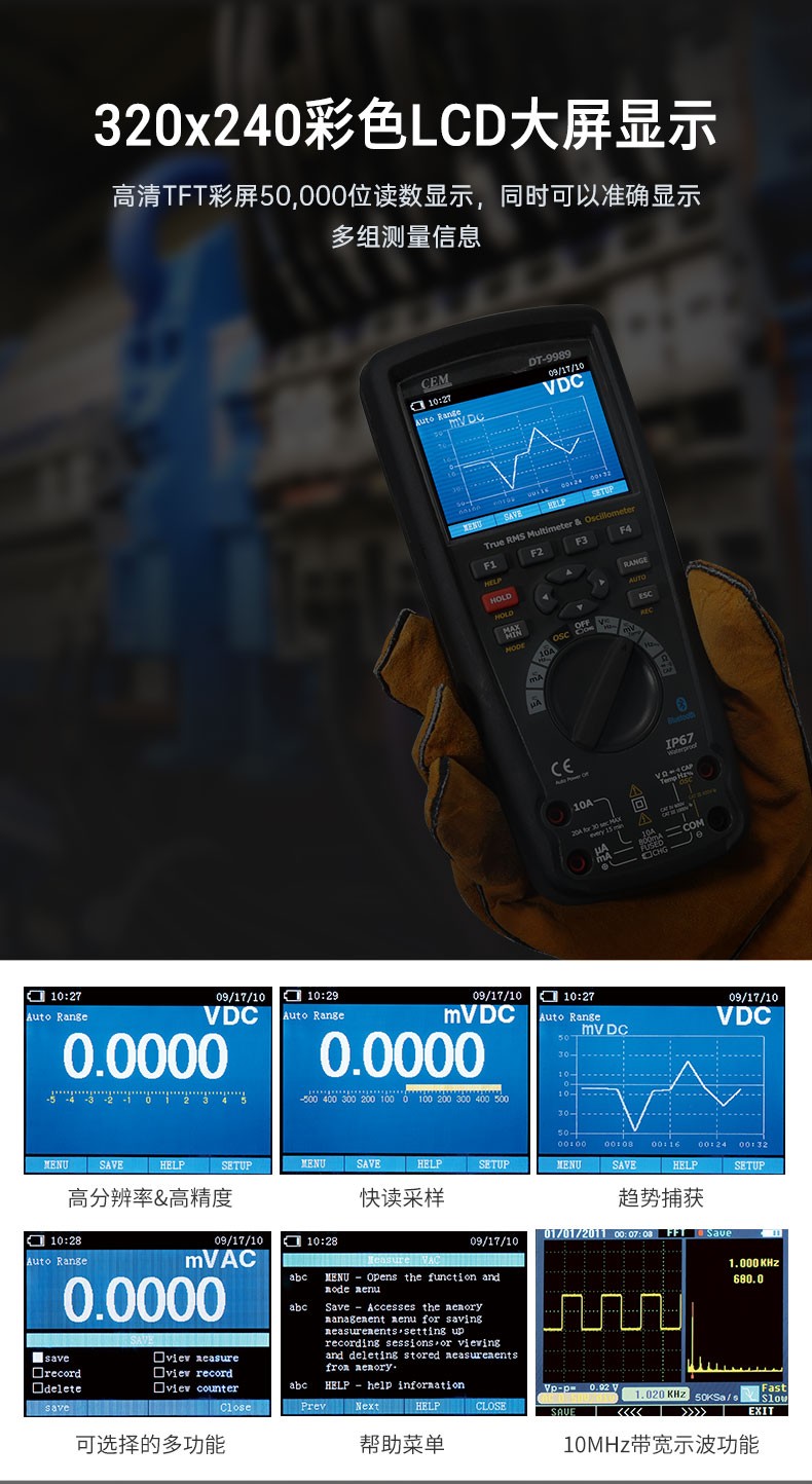CEM華盛昌DT-9987工業(yè)高精度彩屏成像數(shù)字萬用表