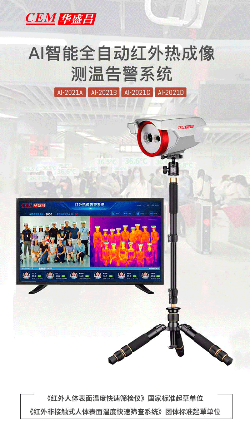 注意事項 紅外熱像告警系統(tǒng)應正確安裝,可自動跟蹤人體額頭區(qū)域并顯示體溫,操作人員應經生產廠家專業(yè)培訓,并嚴格按說明書使用。 ·應嚴格按照中國國標(GB_T19146-2010)和各地市場監(jiān)管局的要求創(chuàng)造使用條件;·嚴格按照規(guī)范要求,安裝在室內無風或者微風的固定位置使用,室溫環(huán)境在16°℃~32°C,避免陽光、風和其他熱源干擾(環(huán)境溫度超出16°℃~32°℃,需要安裝空調,并在產品3m內無風或者微風); ·若安裝在室外,必須搭建棚子或者板房來保證環(huán)境穩(wěn)定; ·戶外陽光照射后、劇烈運動后或從溫差較大的戶外場景進入室內,需在室內環(huán)境平靜靜置5分鐘后進行測試。