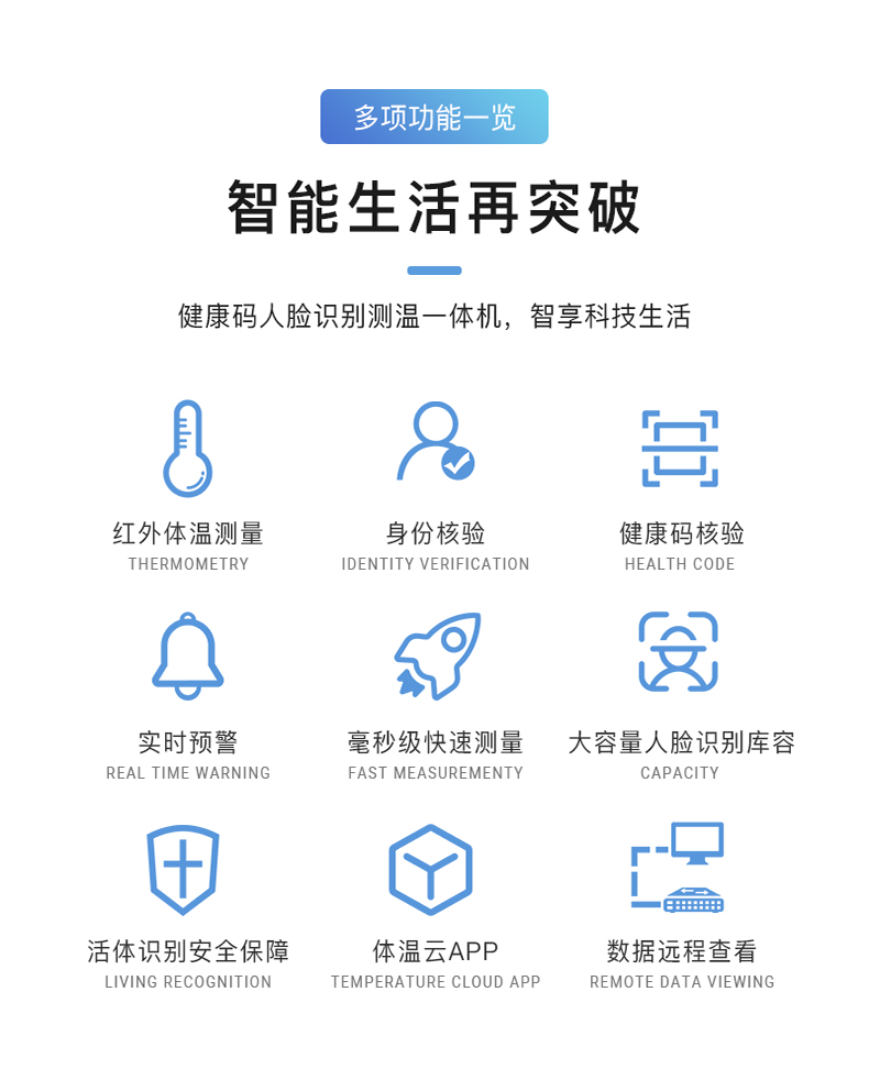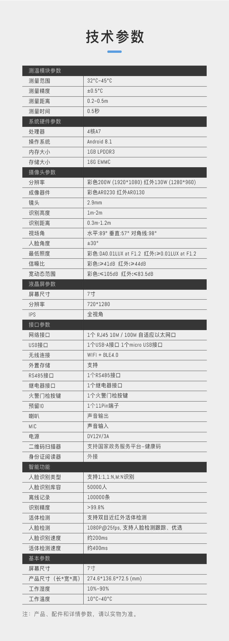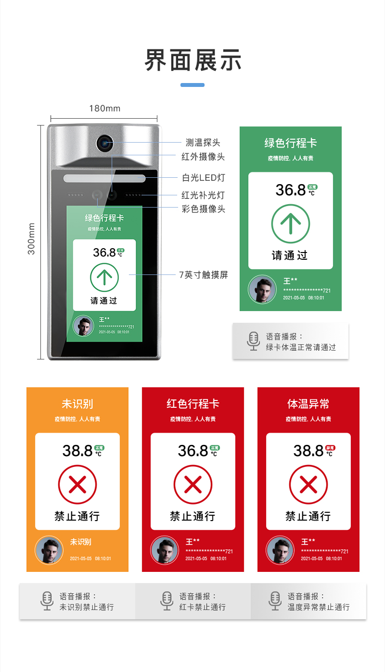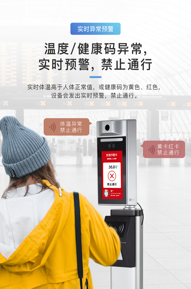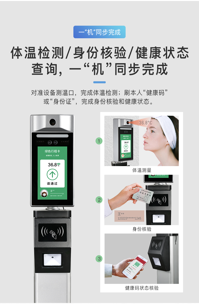 身份證/國(guó)康碼讀取智能核驗(yàn)終端 ·AI人臉識(shí)別測(cè)溫 ·插電聯(lián)網(wǎng)即用·遠(yuǎn)距離高精度測(cè)溫·身份證比對(duì) ·可組網(wǎng)和深度定制