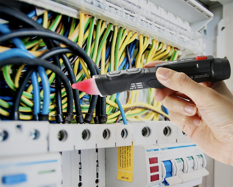當(dāng)檢測(cè)到附近交流電壓時(shí),紅色的LED指示燈將閃爍并發(fā)出警報(bào)聲,LED閃爍和蜂鳴報(bào)警隨電壓強(qiáng)弱而變化,可以幫助操作人員更加準(zhǔn)確地判斷電路的狀態(tài)。自帶LED照明燈可以在光線(xiàn)較差的地方輔助檢查工作。