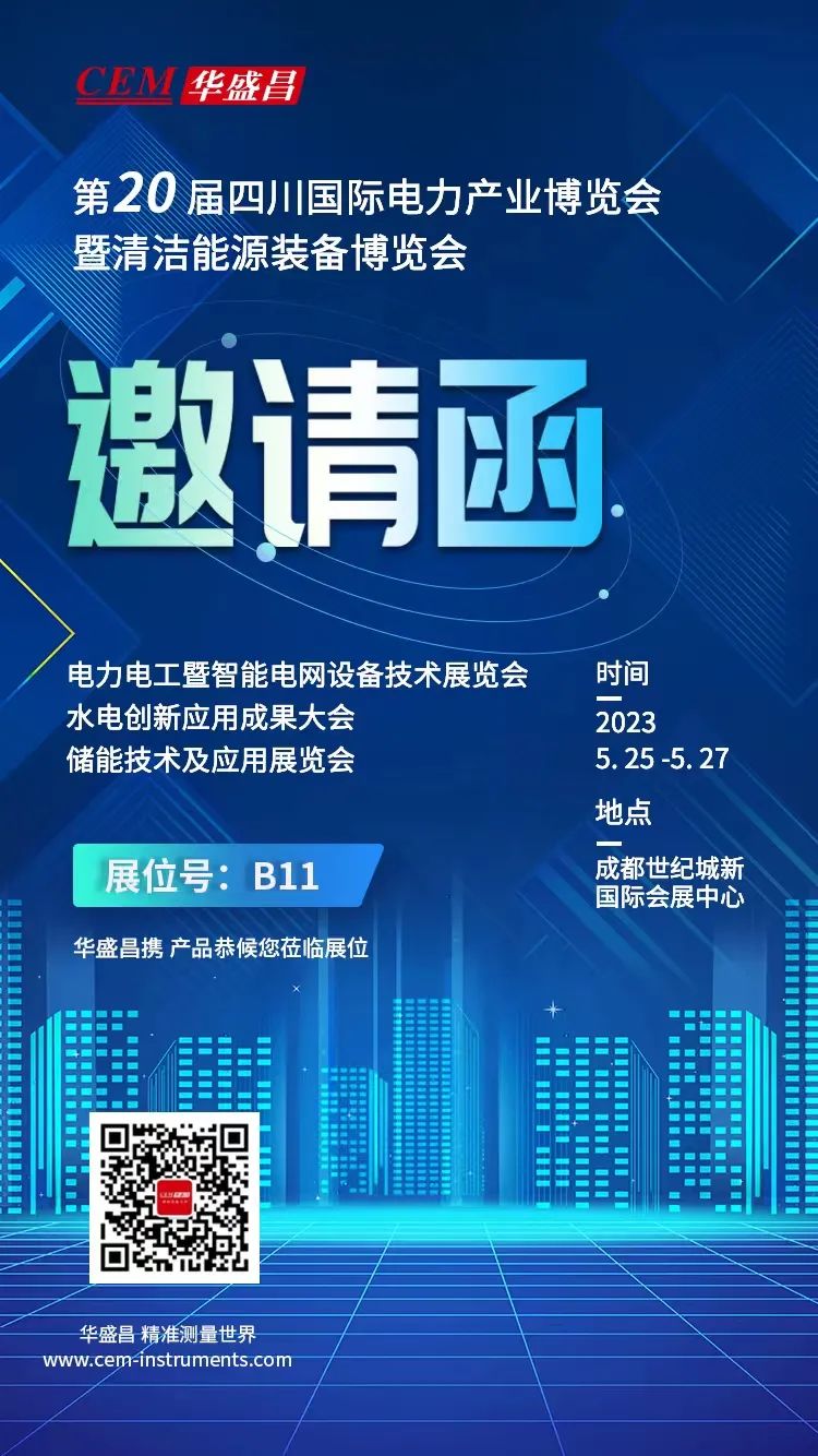 2023年5月25—27日,一年一度的電力能源行業(yè)盛會——第二十屆四川國際電力產(chǎn)業(yè)博覽會暨清潔能源裝備博覽會將在成都世紀(jì)城新國際會展中心舉行。華盛昌將攜旗下多款電子電力檢測儀器亮相B11展位。